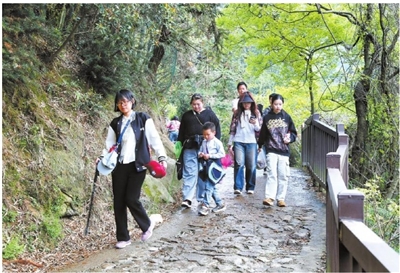 阳春三月,春光明媚。近日,舒适的天气让不少市民选择到户外踏青赏花、徒步登山、露营郊游,感受大自然的美好。图为市民在栲栳山健身步道登山踏青。
