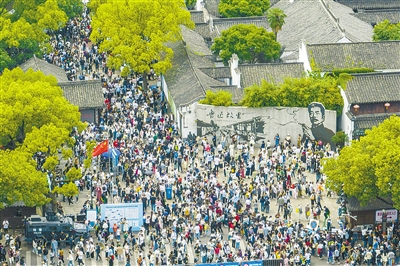 5月3日,游客在浙江省绍兴市鲁迅故里参观游玩(无人机照片)。2024年“五一”假期,全国文化和旅游市场总体平稳有序。文化和旅游部5月6日发布数据显示,据文化和旅游部数据中心测算,全国国内旅游出游合计2.95亿人次,同比增长7.6%,按可比口径较2019年同期增长28.2%;国内游客出游总花费1668.9亿元,同比增长12.7%,按可比口径较2019年同期增长13.5%。■新华社发 |