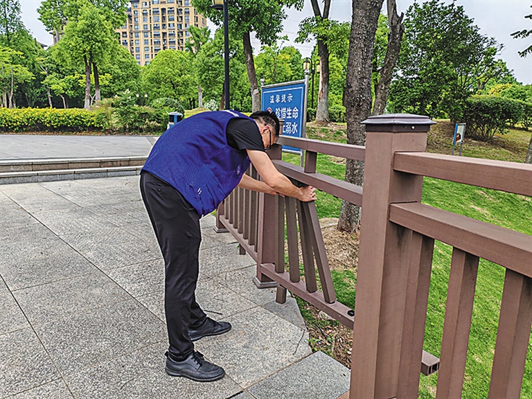 慈晓客户端慈圈“圈友”是琦琦琦琦琦阿~:宗汉街道桃园江社区网格员在巡河过程中发现河道护栏损坏,第一时间在网格内进行上报,并在现场拉起应急安全警戒旗。