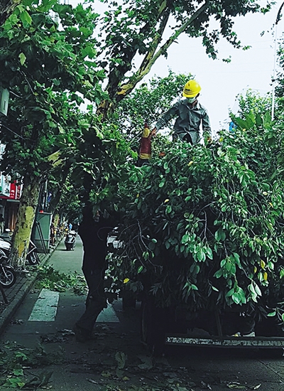 慈晓客户端慈圈“圈友”郑爱珍:烈日下,园林工人正在作业,向高温下劳动者致敬。
