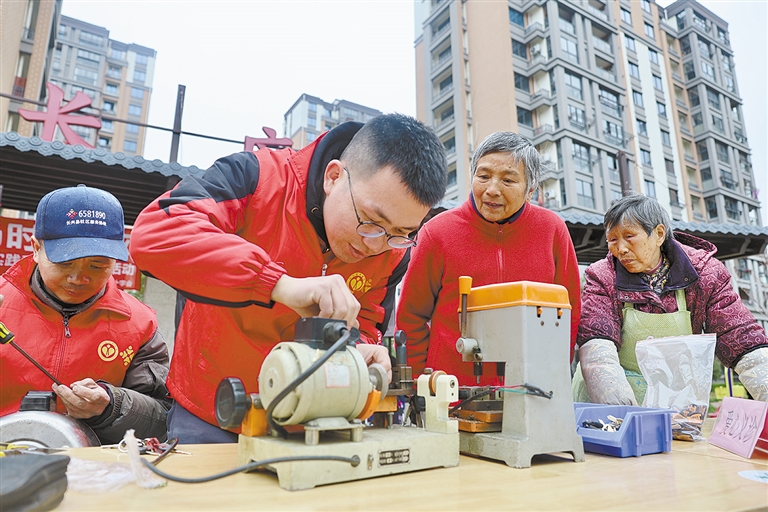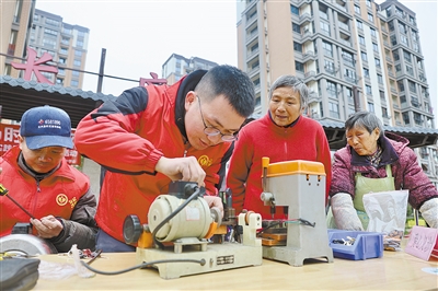 3月5日,青年志愿者在浙江省湖州市长兴县太湖图影山湖花园社区为辖区居民提供免费配钥匙服务。当日是学雷锋纪念日,各地开展志愿服务活动,传承雷锋精神,弘扬时代新风。