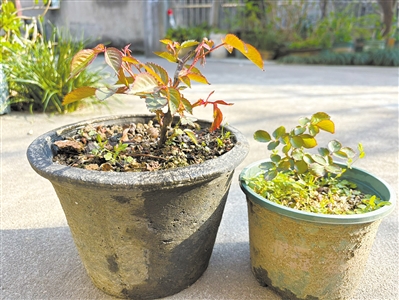 慈晓客户端“慈圈”圈友华家小青:左边大盆是去年领来的月季,右边小盆是自己扦插的小苗。“妈妈”和“孩子”期待今年同时绽放!