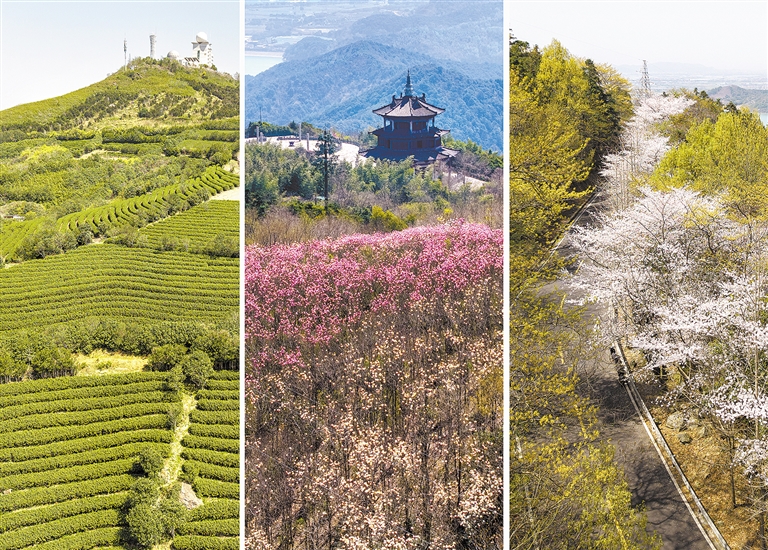 近日,在龙山镇达蓬山,春日景色宜人。连绵茶园尽显生机,玉兰花、樱花竞相绽放,远处田野里点缀着一片片的油菜花海,到处生机勃勃。