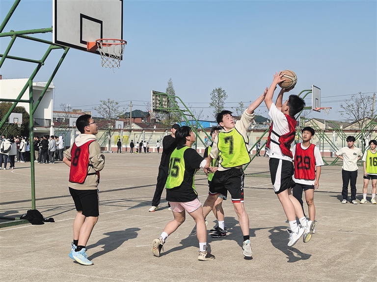 近日,为丰富校园阳光体育活动,提高青少年篮球运动技能,促进学生体质健康水平提升,耕民初级中学举行了校园篮球系列活动之——男生“三人篮球”比赛。比赛现场,运动员们精神饱满,斗志昂扬,他们默契的配合、精准的投篮,赢得了观众的阵阵掌声和欢呼声。