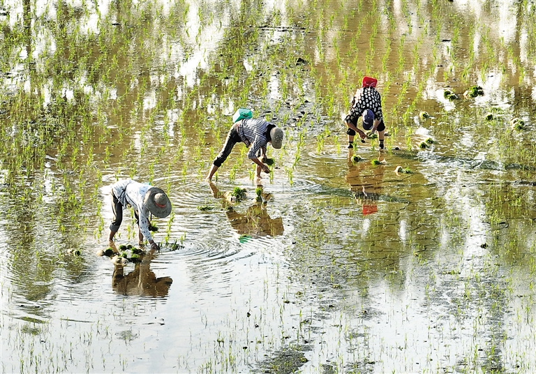 补栽稻秧 保丰收 近日,新浦镇稻农在稻田抢抓农时补栽稻秧,为水稻丰收打下基础。 ■摄影 全媒体记者 王烨江