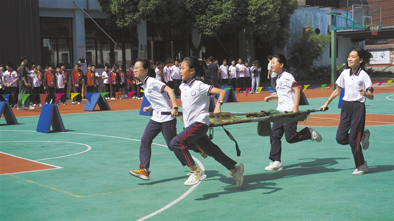 近日,观海卫镇卫山学校第五届趣味军体校运会火热举行。运动会在团体和个人比赛项目中融入国防科技元素,有抗洪抢险、战地救援、“手榴弹”投壶、射击等比赛项目,让学生们在趣味性、挑战性体育竞技比赛中增强国防观念,激发爱党爱国之情。■摄影 全媒体记者 韩雅依 通讯员 沈怿熠