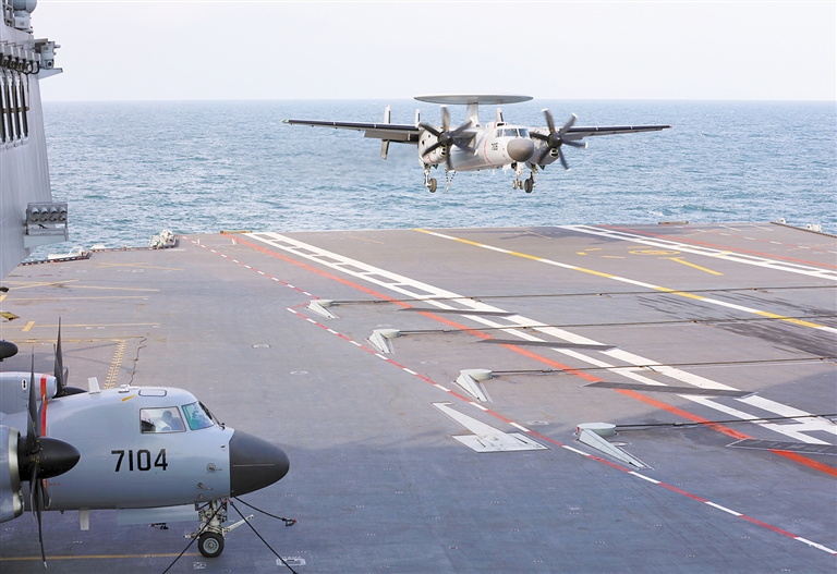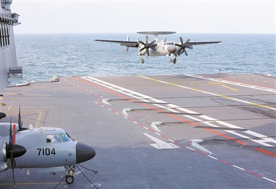 空警-600舰载预警机在福建舰阻拦着舰。(资料照片) ■新华社发