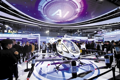 10月17日,观众在博览会上了解一款可载人飞行器。